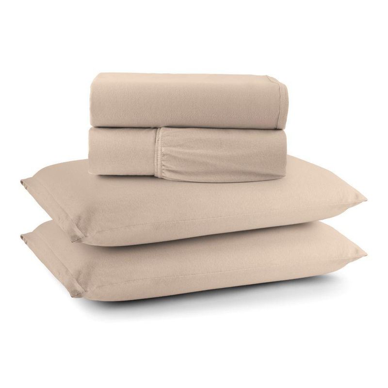 Jogo Cama Lençol Casa Scarpa Sonnet Queen Malha Lisa Algodão Macio 4 Peças - Avelã
