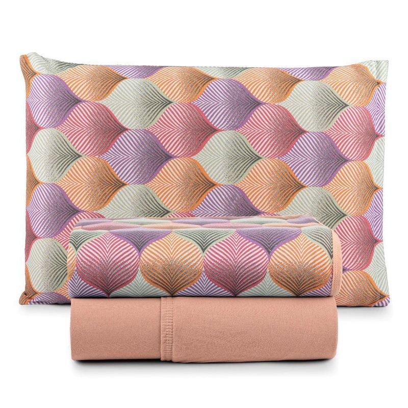 Jogo Cama Lençol Casa Scarpa Sonnet Solteiro Malha Estampada Algodão 3 Peças - Mosaico - Salmão