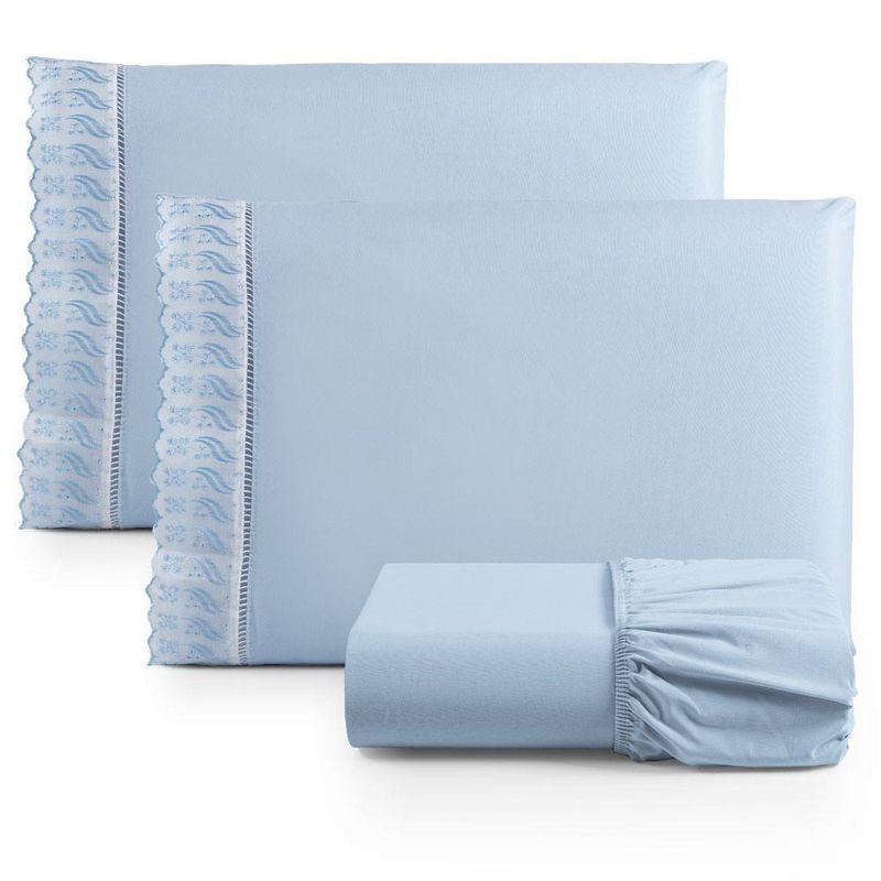 Jogo Cama Lençol Paris King Percal 180 Fios 100% Algodão Lese Bordada 3 Peças - Azul Claro