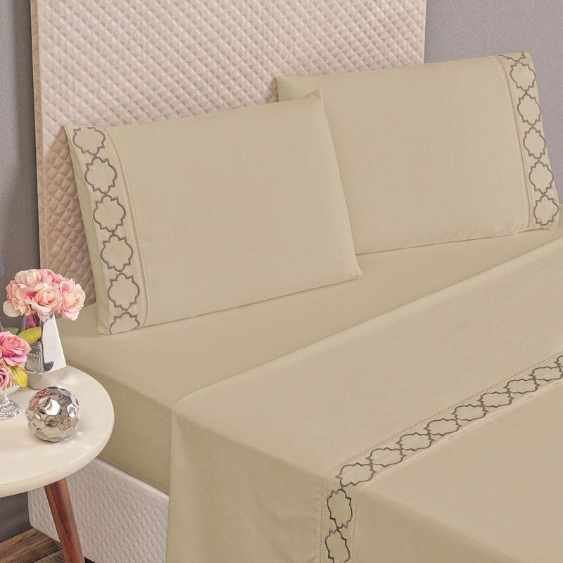 Jogo Cama Lençol Santoro King Micropercal 300 Fios 4 Peças - Cáqui