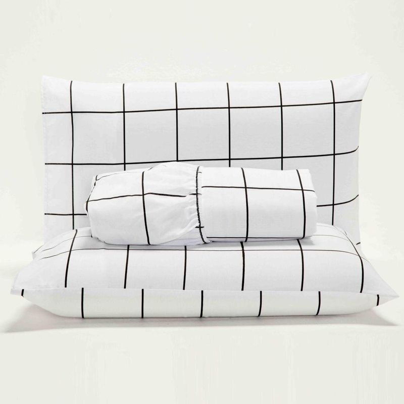 Jogo Cama Lençol Square Queen Quadriculado Percal 180 Fios 3 Peças - Branco