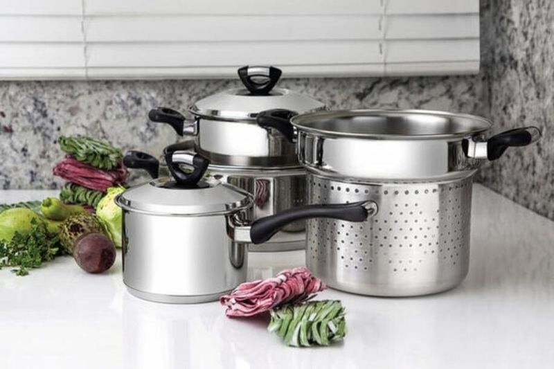 - Fundo triplo (aço inox + alumínio + aço inox) distribui o calor uniformemente, proporcionando um cozimento mais rápido e uniforme, economizando energia e deixando os alimentos aquecidos por mais tempo.