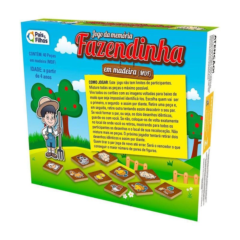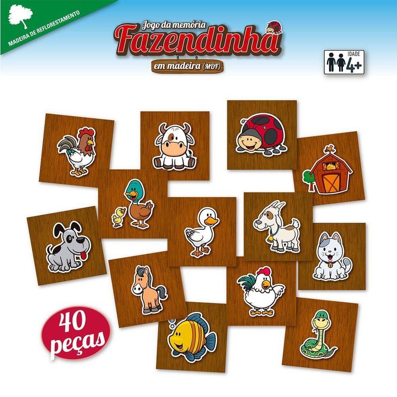 Jogo Da Memória Fazendinha Em Madeira - 40 Peças - Pais E Filhos