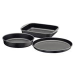 Dimensões AxLxP (mm): Assadeira Funda 61x241x333; Assadeira Redonda 50x255x255; Assadeira para Pizza 19x310x310;