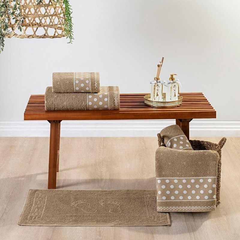 O Jogo de Banho Petit Poá é lindamente trabalhado em tecido 100% algodão, a gramatura 450gm2 conta com um padrão de desenho nas toalhas e um perfeito acabamento.