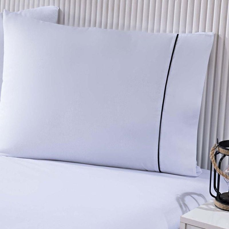 O Jogo de Cama Gran Moratta é confeccionado com tecido Percal 100% Algodão, é Branco e possui um toque de cor em seu detalhe em Vivo.