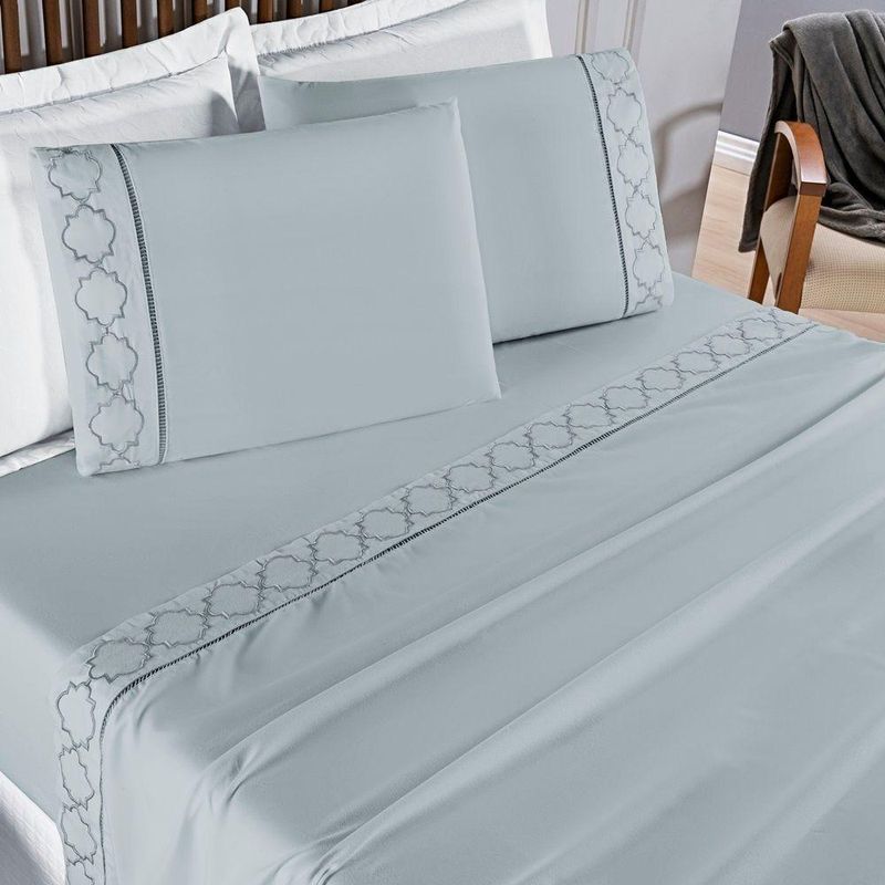 Jogo De Cama 300 Fios Bordado Queen Infinity 04 Peças - Cinza