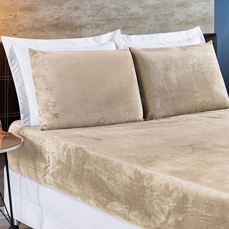 Jogo De Cama Casal Queen Biasoft Manta Microfibra 3 Peças - Cáqui
