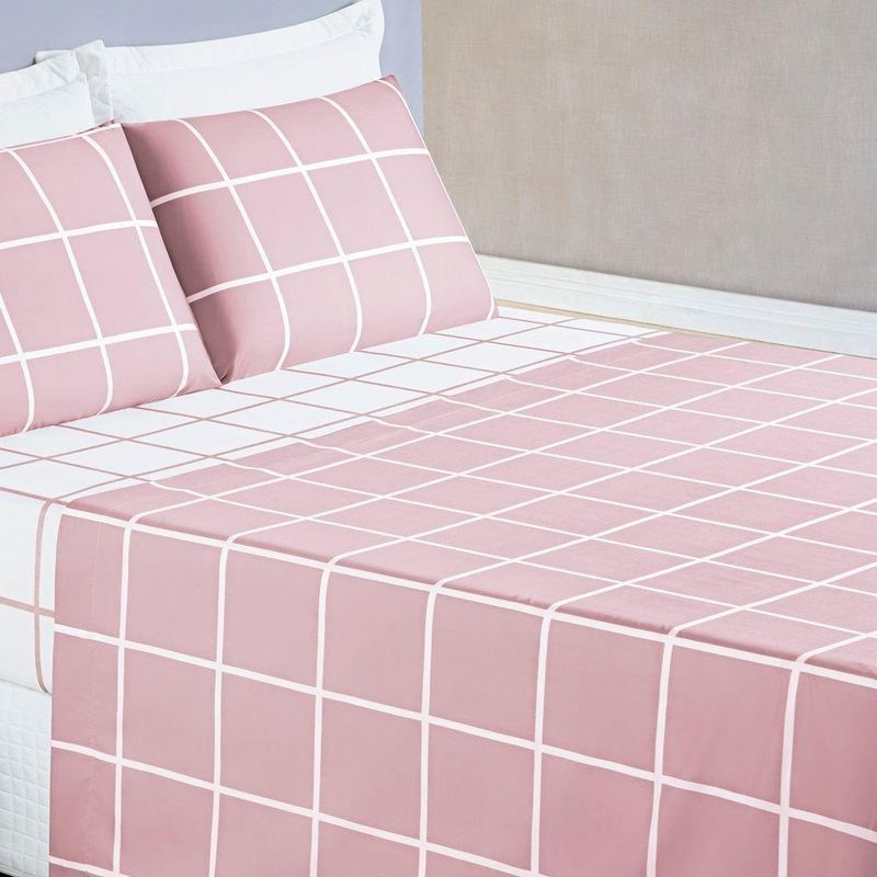 Jogo De Cama Com Lençol De Cima 200 Fios Austin Queen 04 Peças - Rosa