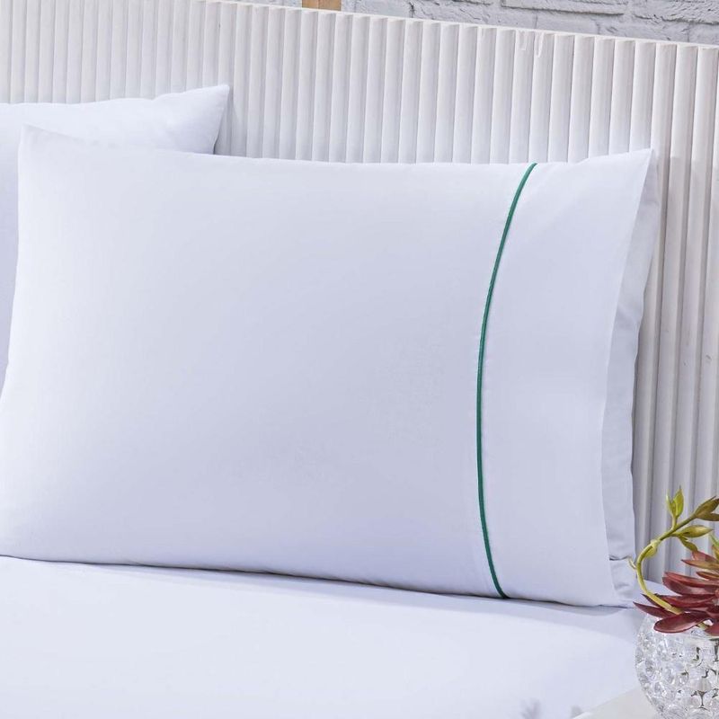 Jogo De Cama Lençol 100% Algodão Percal 150 Fios King Gran Moratta 3 Peças - Branco E Verde