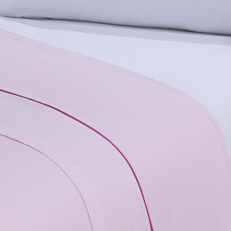 Jogo De Cama Lençol 100% Algodão Percal 150 Fios Queen Gran Moratta 4 Peças - Branco E Rosa