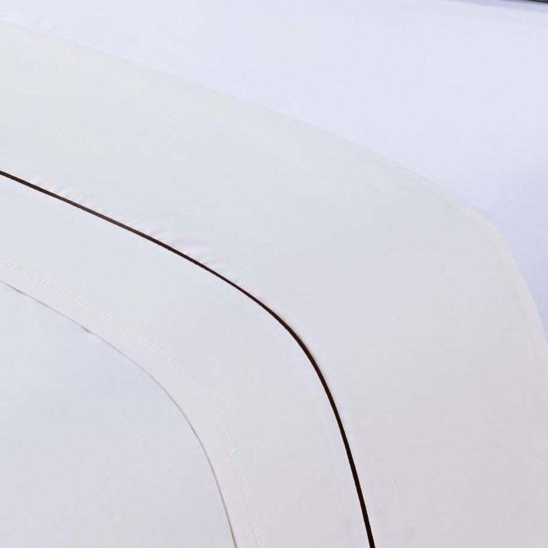 Jogo De Cama Lençol 100% Algodão Percal 150 Fios Queen Gran Moratta 4 Peças - Branco E Palha