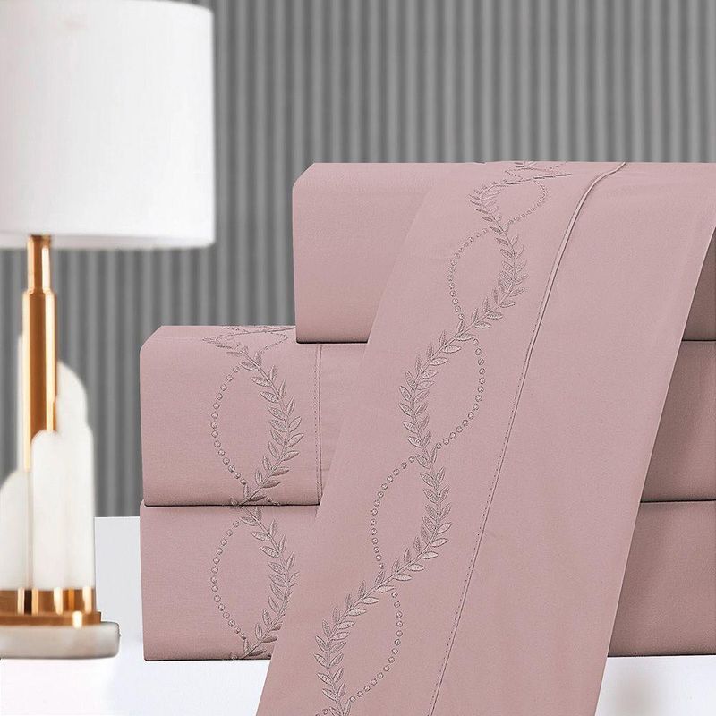 Jogo De Cama Lençol Casal Romantico Percal 300 Fios 4 Peças - Rosê - 100% Poliéster