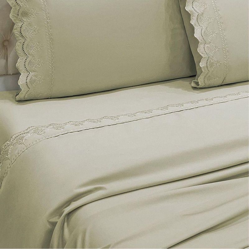Jogo De Cama Lençol King Supremo 3 Peças Micropercal 300 Fios - Bege - 100% Poliéster