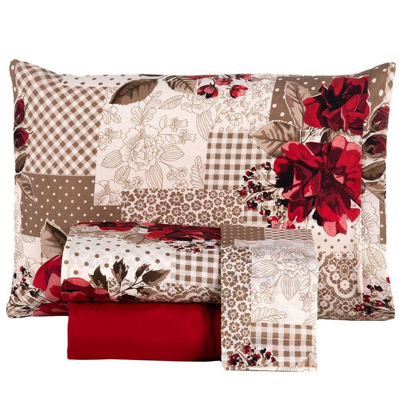 Jogo De Cama Lençol Matrix Queen Percal 4 Peças - Vermelho - 100% Poliéster