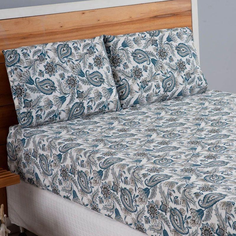 Jogo De Cama Lençol Queen Estandarte Percal 180 Fios 2 Peças - Azul Ramos - 100% Poliéster