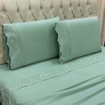 Jogo De Cama Lençol Queen Nupcial Percal 300 Fios 4 Peças - Verde - 100% Poliéster