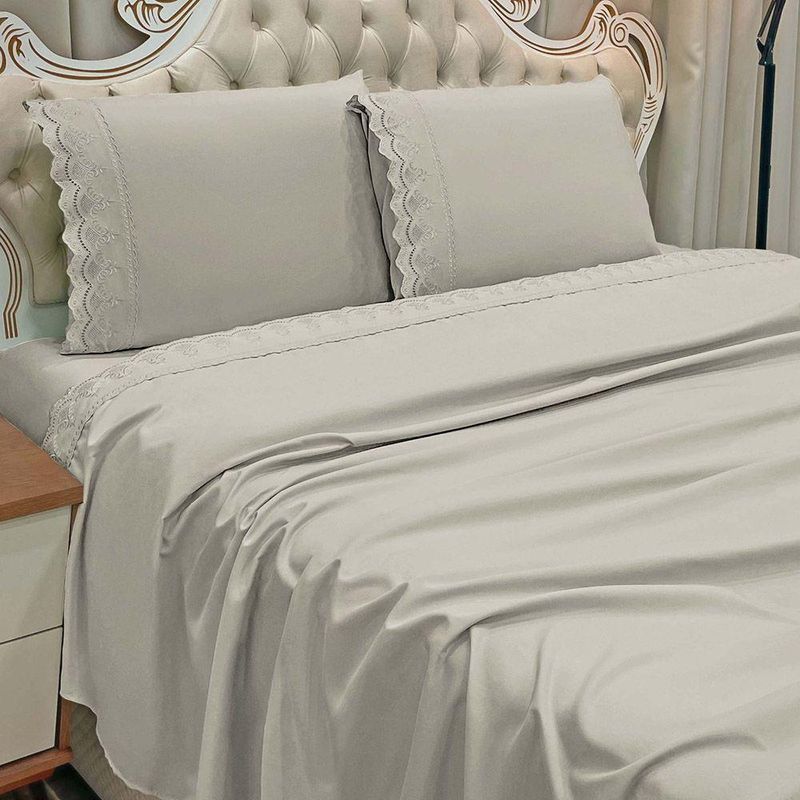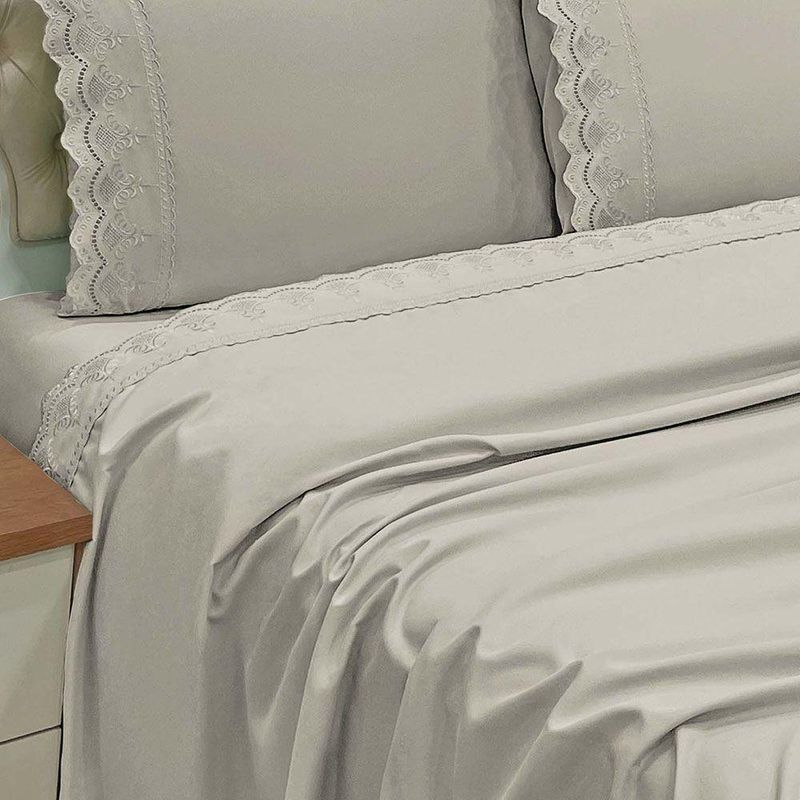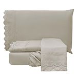 Jogo De Cama Lençol Realce King 4 Peças Percal 300 Fios Bordado Inglês Macio - Fendi - 100% Poliéster