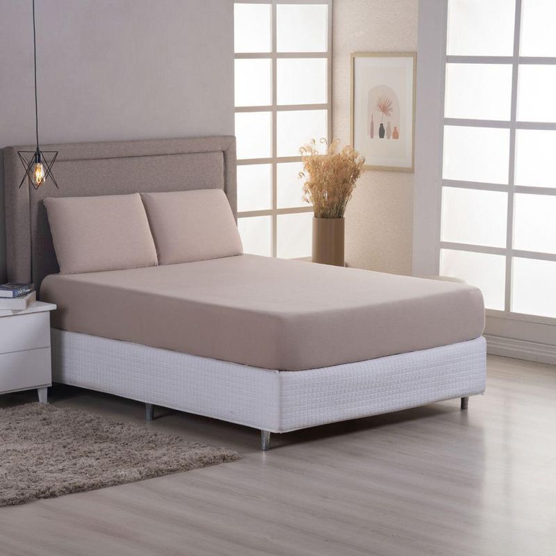 Jogo De Cama Lençol Sereno Queen Em Malha Algodão - Cáqui - 100% Algodão