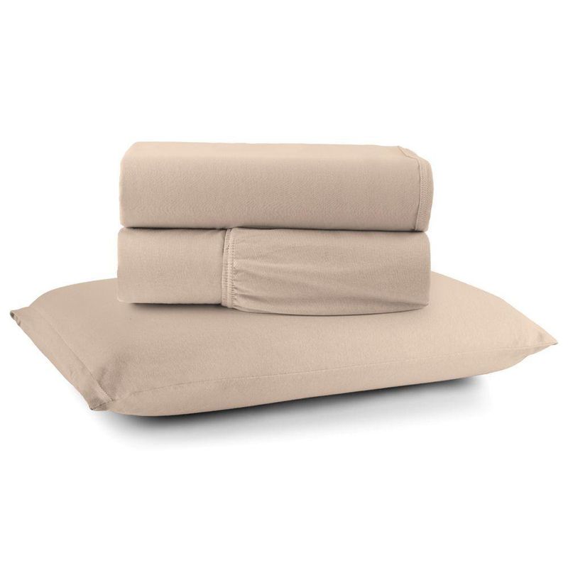 Jogo De Cama Lençol Sereno Solteiro 3 Peças Em Malha Algodão - Bege - 100% Algodão