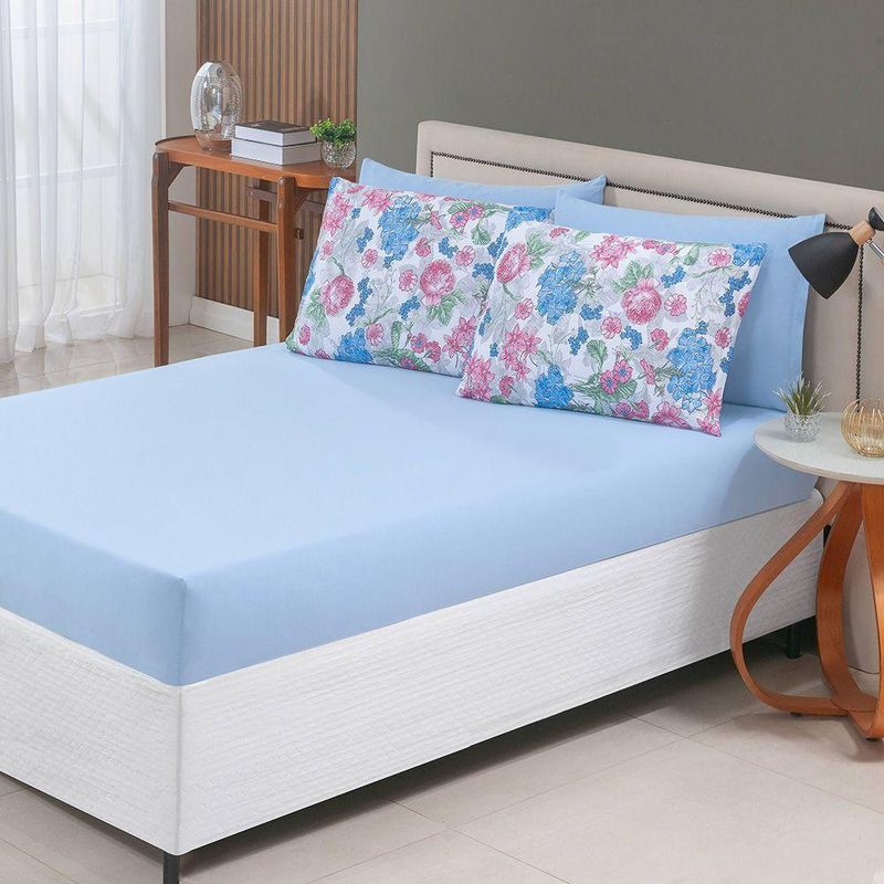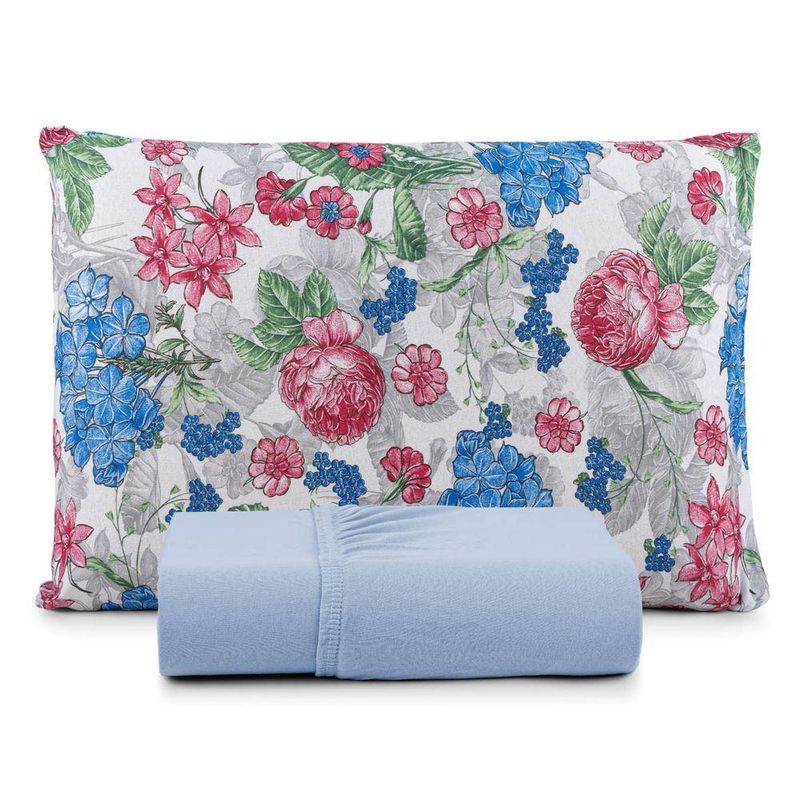 Jogo De Cama Lençol Sonho Bom Solteiro Em Malha Algodão 2 Peças - Azul - 100% Algodão