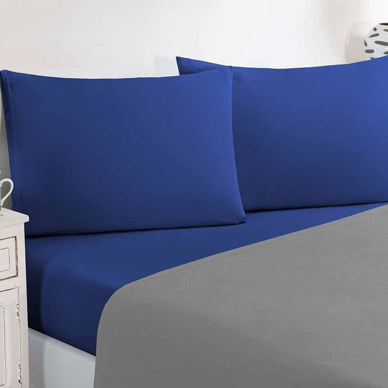 Jogo De Cama Malha Lençol 100% Algodão Gran Moratta 4 Peças Casal - Cinza/azul Royal
