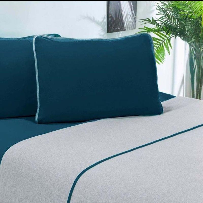 Jogo De Cama Malha Lençol 100% Algodão Urbano 4 Peças King - Azul Petroleo/mescla