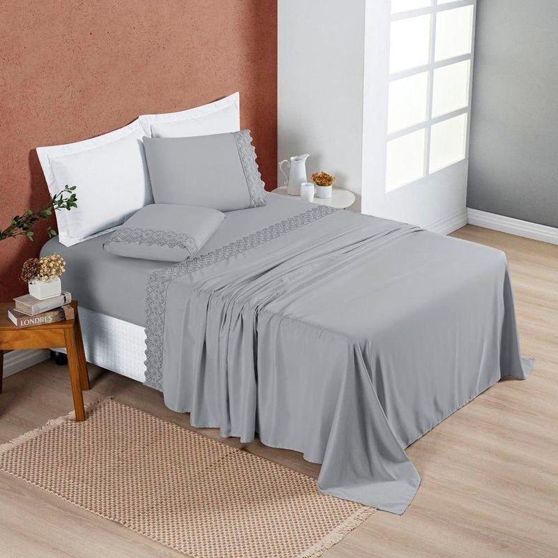 Jogo De Cama Nobless Casal Padrão 04 Peças - Grafite