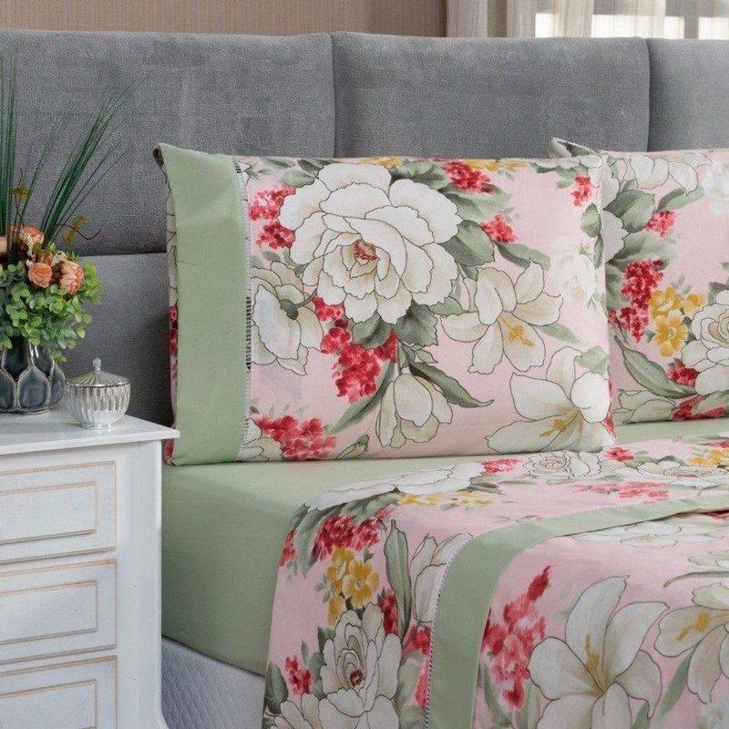 Jogo de Cama Estampado MicroPercal 200 Fios Naturale Queen 04 Peças -