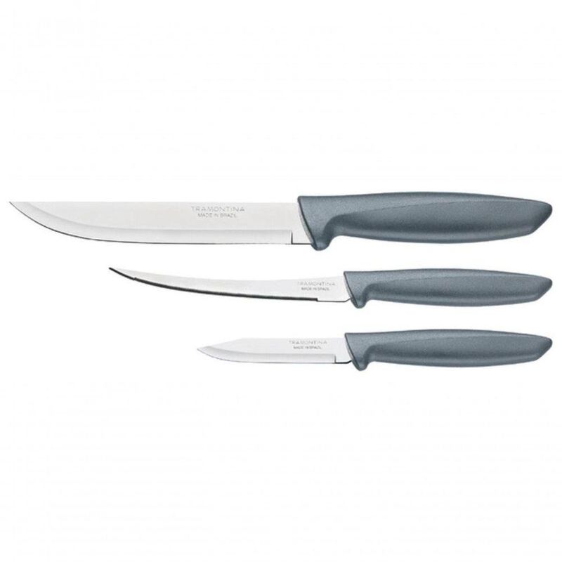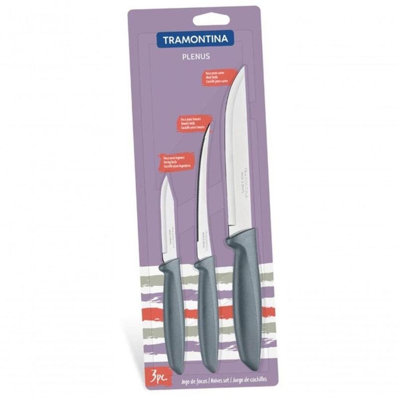 Jogo De Facas Tramontina Plenus 3 Peças Cabo Cinza