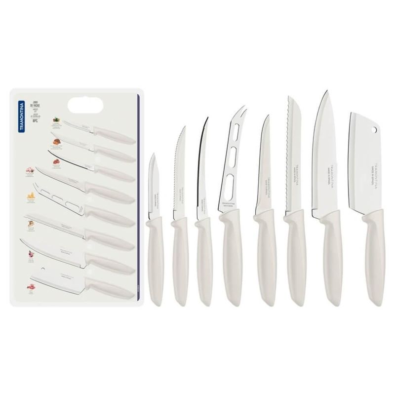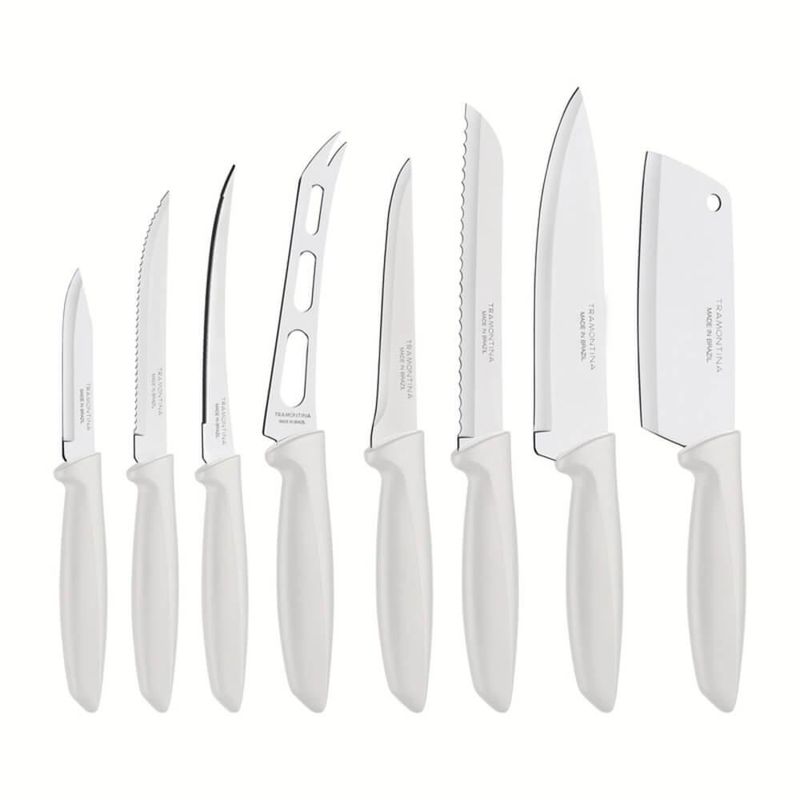 Você vai encontrar charme e praticidade com o jogo de facas Tramontina Plenus com lâminas em aço inox e cabos de polipropileno off white 8 peças. São oito peças para os mais variados tipos de cortes. Produzidas com materiais de qualidade, os cabos em polipropileno Off White é confortável para o manuseio. As lâminas em aço inox são resistentes e atendem desde o preparo dos alimentos ao serviço de mesa. Fáceis de limpar, podem ser levados à máquina de lavar louças.
