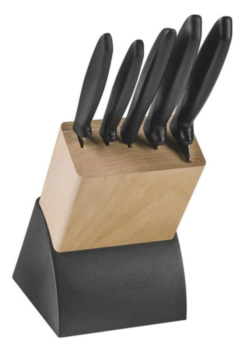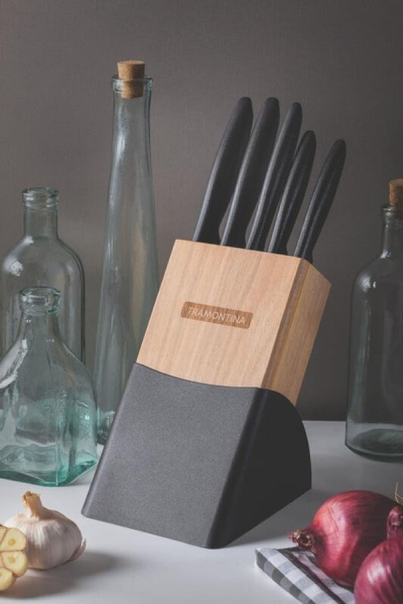 - As facas recebem tratamento térmico especial, o que dá maior durabilidade ao fio.- Resistente à máquina de lavar louças.