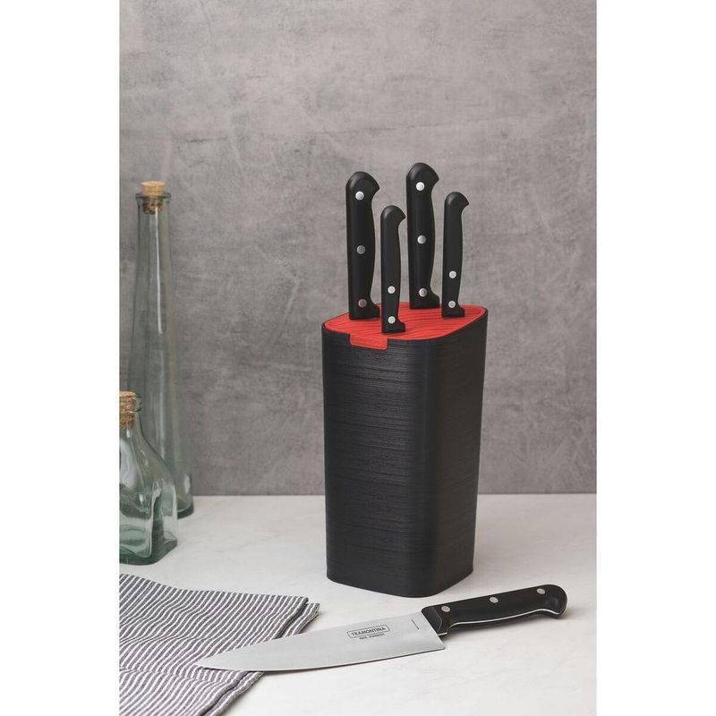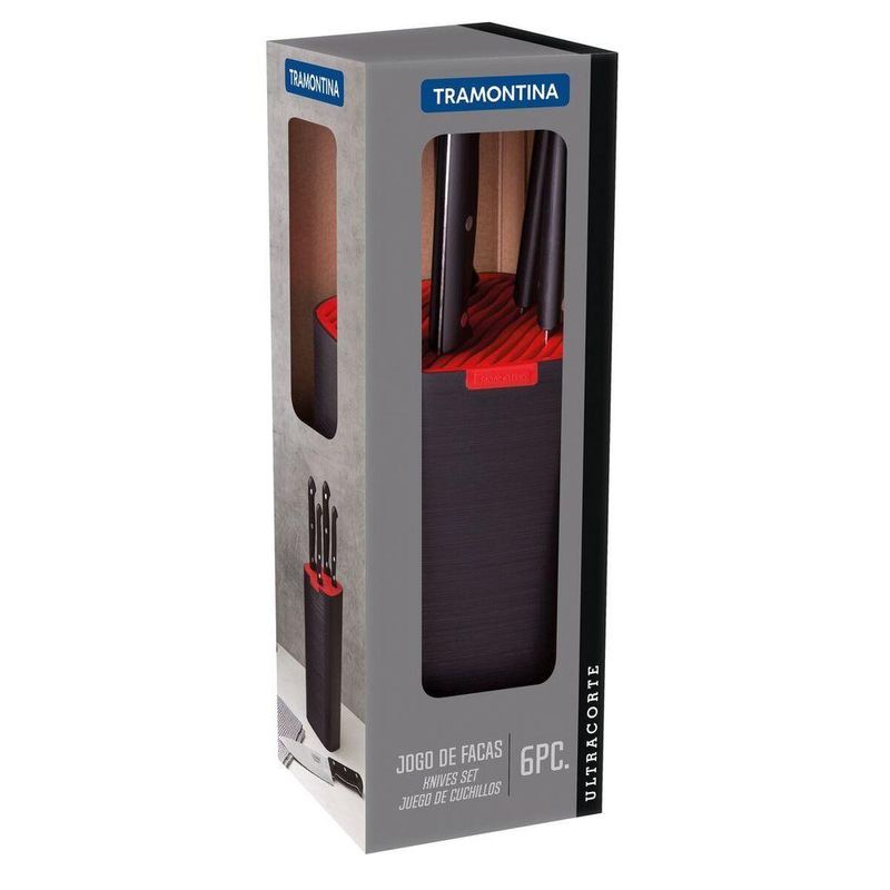 Com o jogo de facas Tramontina Ultracorte com lâminas em aço inox e cabos de polipropileno preto 6 peças, as atividades gastronômicas estarão completas. Com facas perfeitas para o corte de diferentes alimentos, elas garantem durabilidade e resistência. Suas lâminas são produzidas em aço inox e possuem cabos de polipropileno. Além de contar com um lindo suporte de polipropileno que permite sempre ter à mão as facas. Fáceis de limpar, podem ser levadas diariamente à máquina de lavar louças.