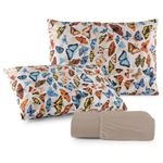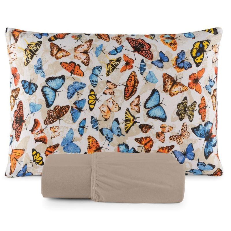 Jogo De Lençol Casal Malha 100% Algodão Com Elástico 3 Peças Bege Estampa Borboleta