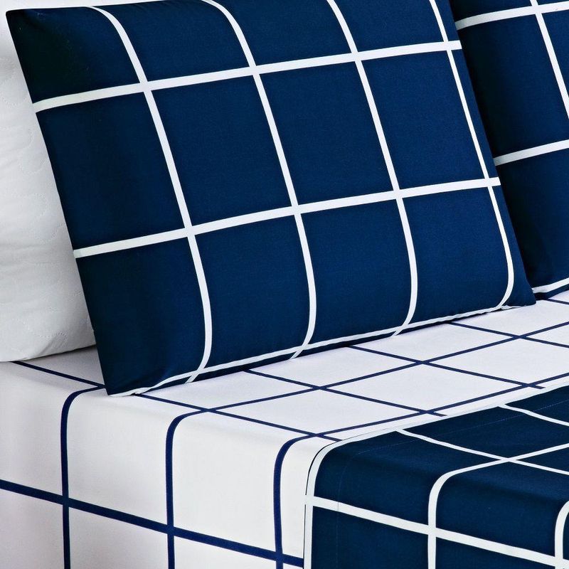 Jogo De Lençol Casal Square 4 Peças Azul Marinho
