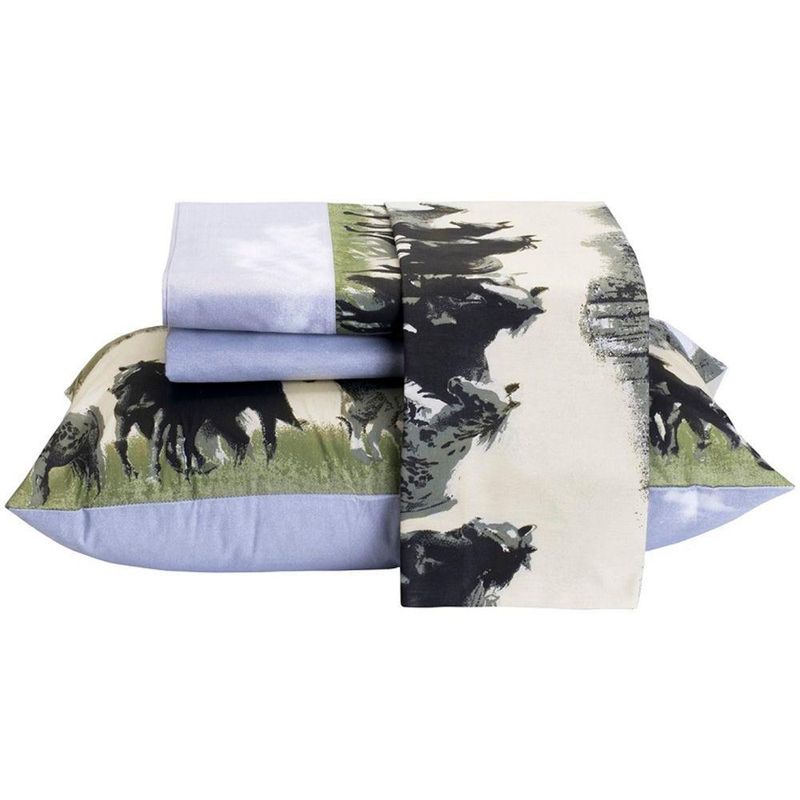 Jogo De Lençol Encatare Casal 4 Peças Estampado 100% Algodão Percal 200 Fios - Texas Cavalo
