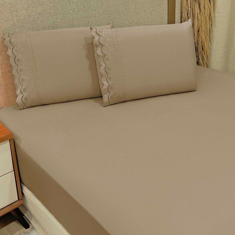 Jogo De Lençol King Bordado Ingles Micropercal 300 Fios Toque De Algodão 3 Peças - Chocolate