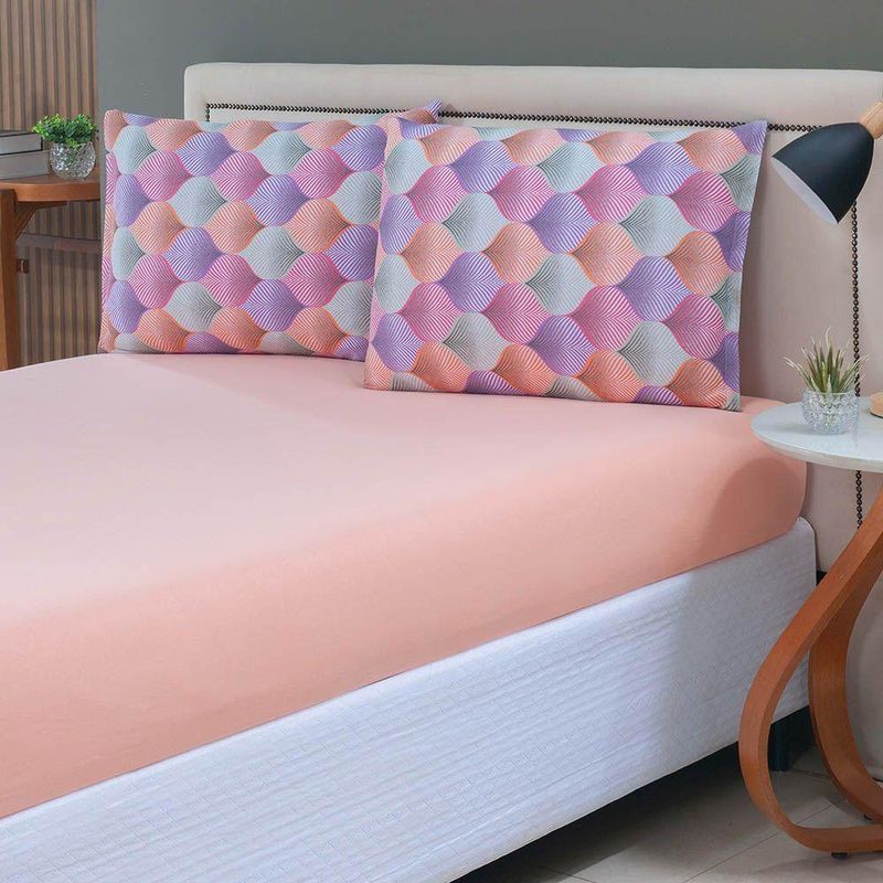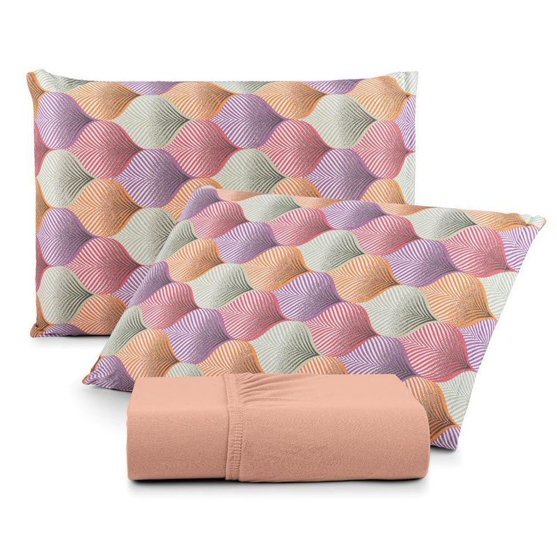 Jogo De Lençol Luar Casal 3 Peças Malha 100% Algodão Estampado - Salmão Geométrico