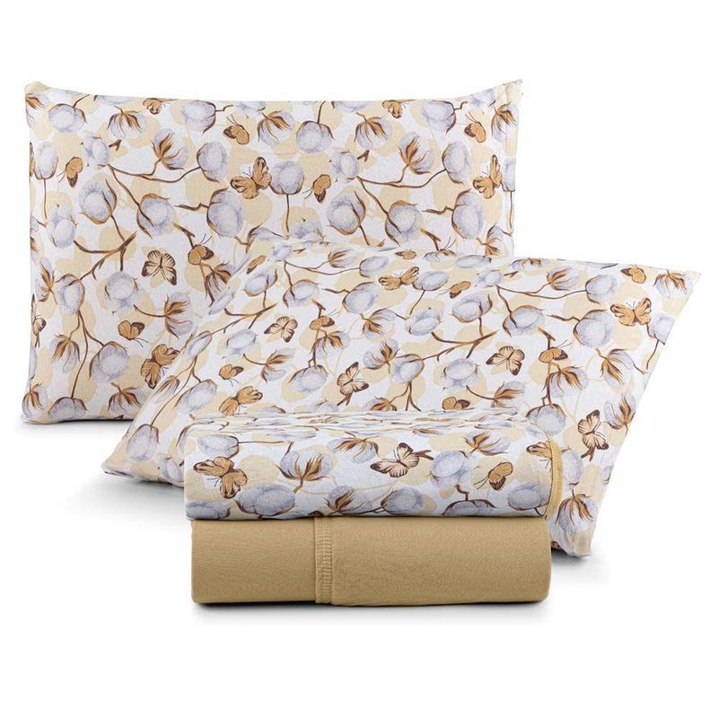 Jogo De Lençol Luar King 4 Peças Malha 100% Algodão Estampado - Mostarda Cotton