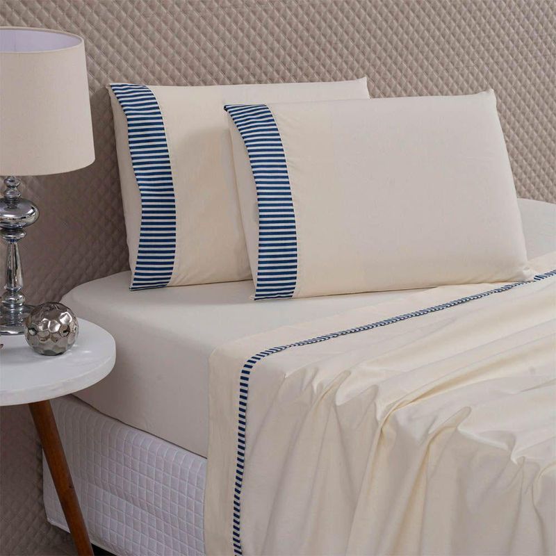 Transforme suas noites com o Jogo de Lençol Plisse, projetado para unir conforto e estilo em um só produto. Feito com 100% algodão de alta qualidade, esse jogo de lençol oferece um toque macio e respirável, garantindo uma experiência de descanso revigorante.Com um design moderno de listras azuis e bordas elegantes, ele adiciona um charme atemporal à decoração do quarto, sendo perfeito para combinar com diferentes estilos. Resistente e durável, o tecido de algodão proporciona facilidade de manutenção e longa vida útil ao produto.Contêm na embalagem 04 Peças.SENDO: