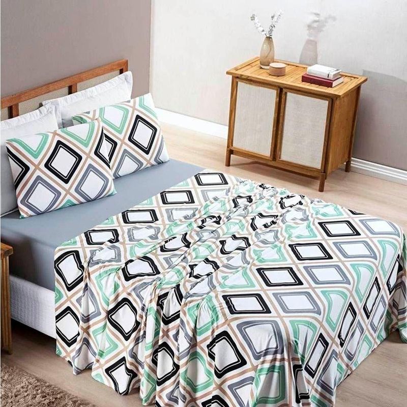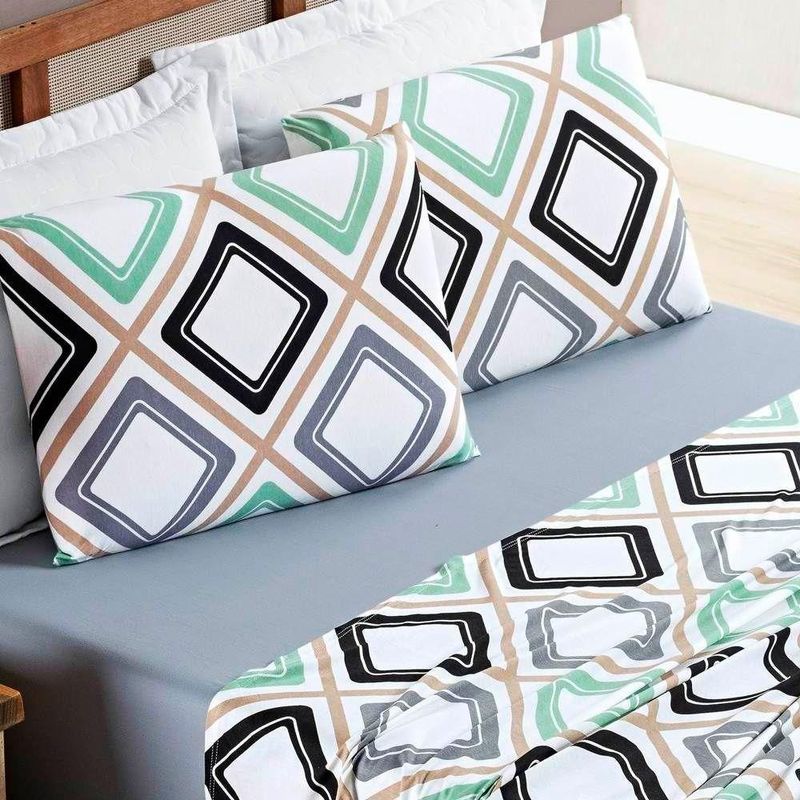 Jogo De Lençol Queen Quality Malha 100% Algodão Estampado 4 Peças Cor Harmony Cinza