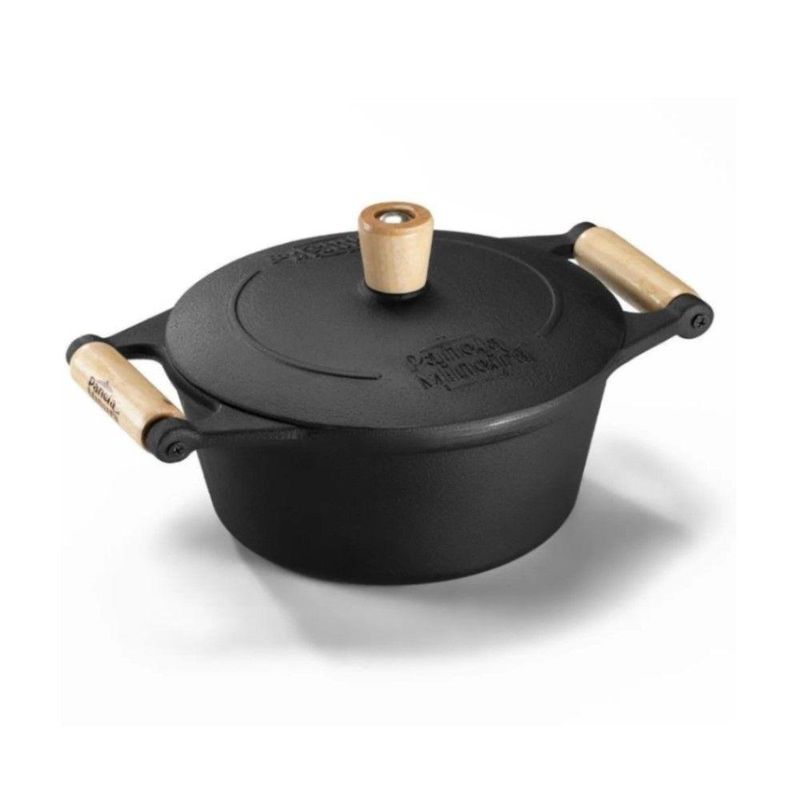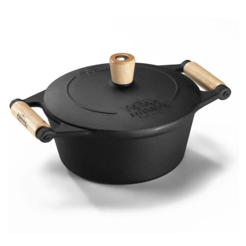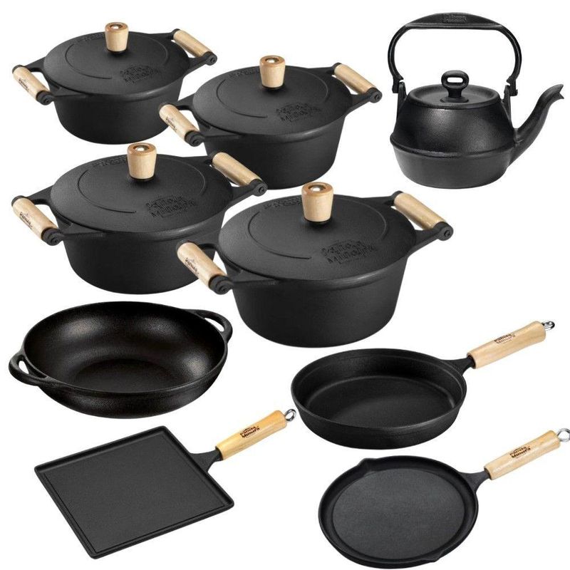 Jogo De Panelas 9 Peças Em Ferro Fundido E Alça De Madeira Panela Mineira