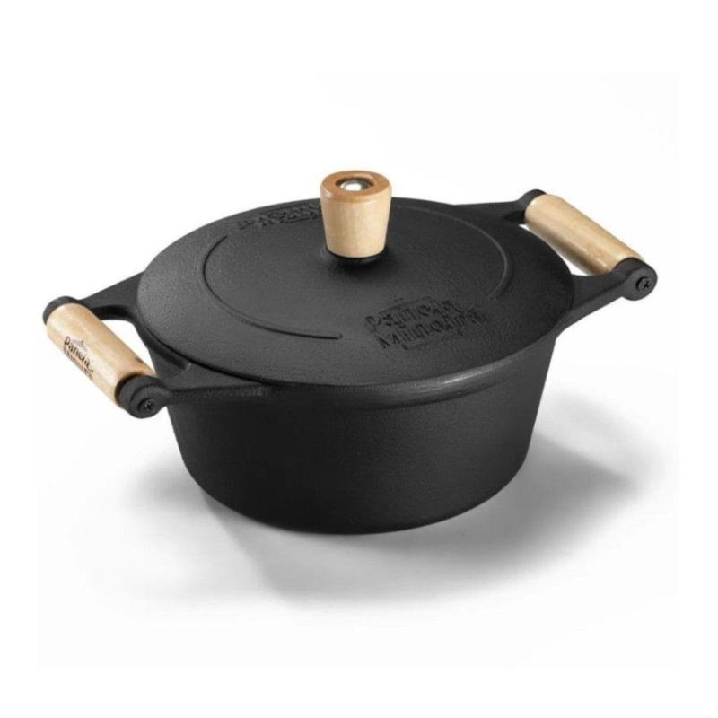 Jogo de Panelas 9 Peças em Ferro Fundido e Alça de Madeira Panela MineiraO Jogo de Panelas 9 peças de Ferro da Panela Mineira possui um design aperfeiçoado, fundo reto preto, bordas alongadas e tampa moderna. Com excelente distribuição e retenção de calor característico do ferro fundido, esse produto se torna ideal para assar, grelhar, fritar e cozinhar. Seu formato redondo é muito utilizado para o preparo de arroz, bife, frango, feijão, carnes e legumes, cozinhando os alimentos uniformemente, de maneira lenta e com muita maciez, o que garante ainda mais sabor e qualidade às receitas.Jogo de Panelas 9 Peças em Ferro Fundido e Alça de Madeira Panela Mineira - Itens Inclusos01 Caçarola Tradição com Tampa - Diâmetro: 16 cm | Altura: 14 cm | Capacidade: 1,2 litros01 Caçarola Tradição com Tampa - Diâmetro: 20 cm | Altura: 16 cm | Capacidade: 2,5 litros01 Caçarola Tradição com Tampa - Diâmetro: 22 cm | Altura: 17 cm | Capacidade: 3,2 litros01 Caçarola Tradição com Tampa - Diâmetro: 24 cm | Altura: 17 cm | Capacidade: 4,0 litros01 Panela Parmegiana - Diâmetro: 22 cm | Altura: 6 cm | Capacidade: 1,5 Litros01 Frigideira Tradição - Diâmetro: 22 cm | Altura: 4,5 cm | Capacidade: 1,2 litros01 Bifeteira Lisa Redonda - Diâmetro: 24 cm | Altura: 1,5 cm01 Bifeteira Lisa Quadrada - Diâmetro: 24 cm | Altura: 1,0 cm01 Chaleira Artesanal - Capacidade: 2,0 litrosJogo de Panelas 9 Peças em Ferro Fundido e Alça de Madeira Panela Mineira - Especificações TécnicasItens: 09Material: Ferro Fundido.Revestimento: Tinta atóxica.Cabo: Madeira (exceto da Panela Parmegiana)Pode ser utilizada nos fogões: elétrico, gás, indução, vitrocerâmico e a lenha.Não pode ir: Forno (as panelas que tem cabo de madeira), micro-ondas e lava louça.