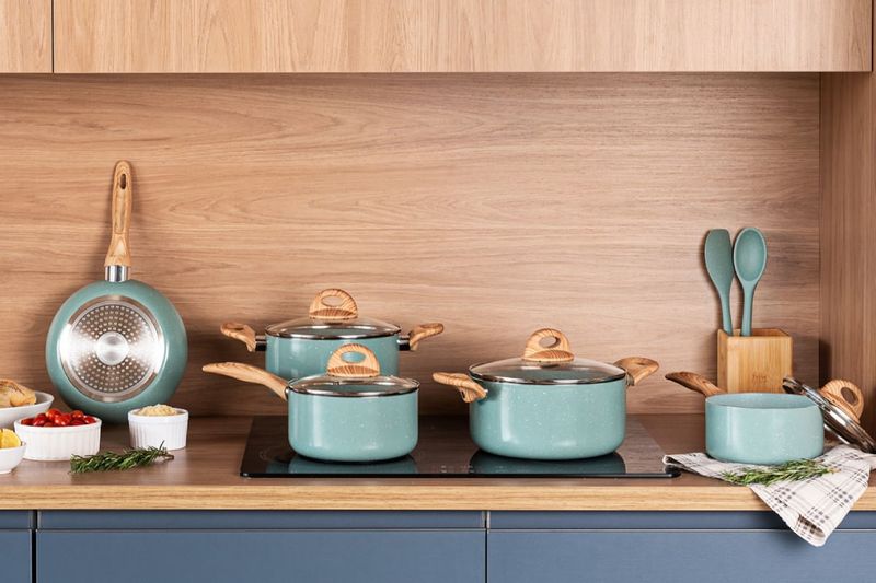 Com o Jogo de Panelas Brinox Antiaderente Ceramic Life 5 Peças Botanika com Indução Verde você tem na sua cozinha tecnologia e responsabilidade ambiental. De quebra, torna o preparo dos alimentos muito mais fácil e agrega ainda mais beleza à sua cozinha com o design contemporâneo desse jogo de panelas.