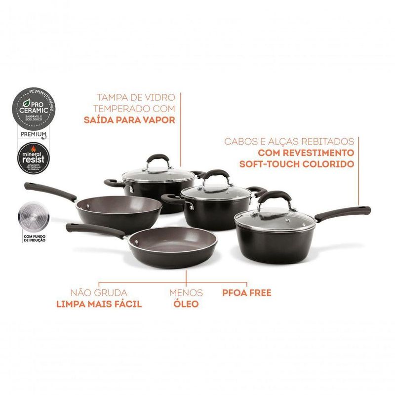 Jogo De Panelas Antiaderente-indução-ceramic Select 5 Pçs Carbono Brinox