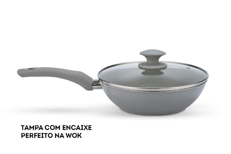 Os cabos, alças e poméis são feitos em baquelite com acabamento soft-touch, que permite um manuseio mais confortável e seguro. As tampas, em vidro temperado, têm saída para o vapor e possibilitam acompanhar o processo de cocção.