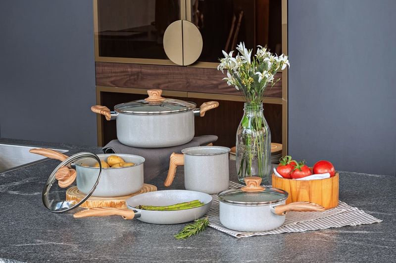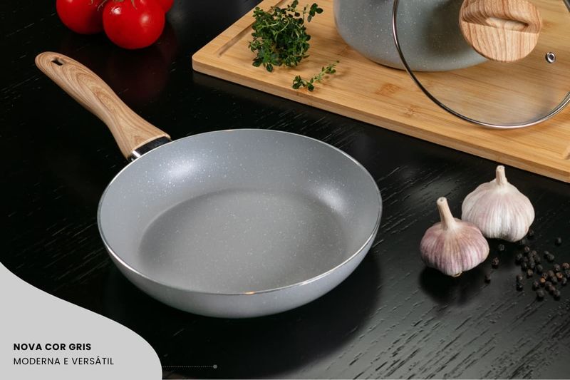 A cor Gris com grânulos Brancos combina com as mais diferentes decorações, criando um ambiente moderno, sofisticado e neutro. Com PFOA free, são itens livres de liberação de toxinas.