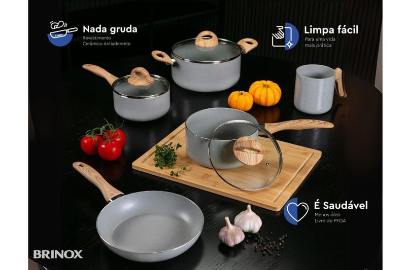 Seja para o dia a dia ou para preparar pratos especiais, ter um bom jogo de panelas é indispensável em qualquer cozinha. Com o Jogo de Panelas Brinox Antiaderente Ceramic Life 5 Peças Easy Gris, além da qualidade e beleza, você leva para sua casa tecnologia e praticidade.
