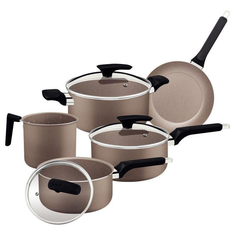 Jogo De Panelas Tramontina Milazzo Alumínio Antiaderente Starflon Max Amêndoa 5 Peças Tramontina