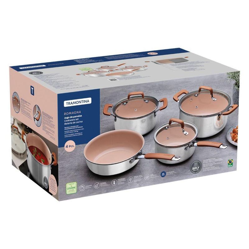 Jogo De Panelas Tramontina Romagna Aço Inox Cerâmico Black Stone 4 Peças Marfim
